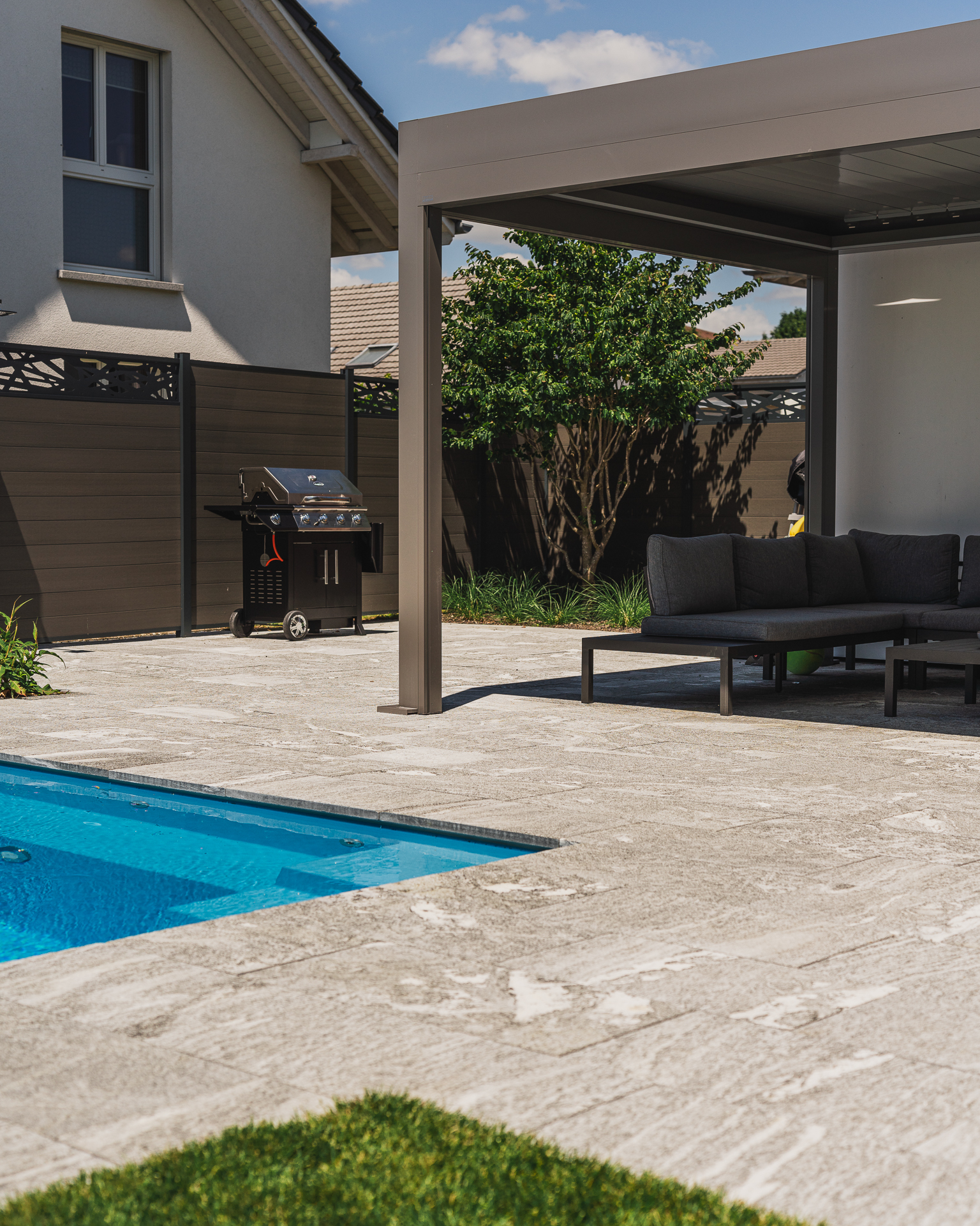 Bei diesem Projekt durften wir den Garten von Grund auf neugestalten – von der ersten Idee über die Planung bis zur Realisierung. Entstanden ist ein moderner Rückzugsort mit klaren Linien, harmonischer Bepflanzung und einem einladenden Schwimmbad als Mittelpunkt.